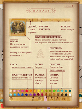 ▪ сохранение в «свои рисунки» и в «фотоальбом» iPad